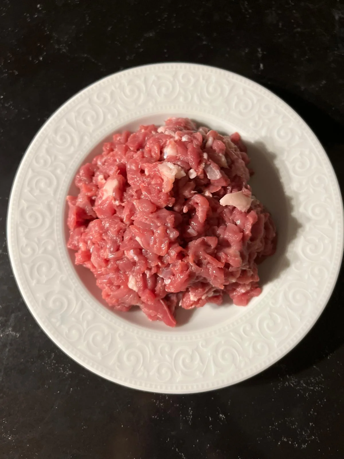 - Kuzu eti küçük küçük (satırla yoksa bıçak yardımıyla) doğranır.