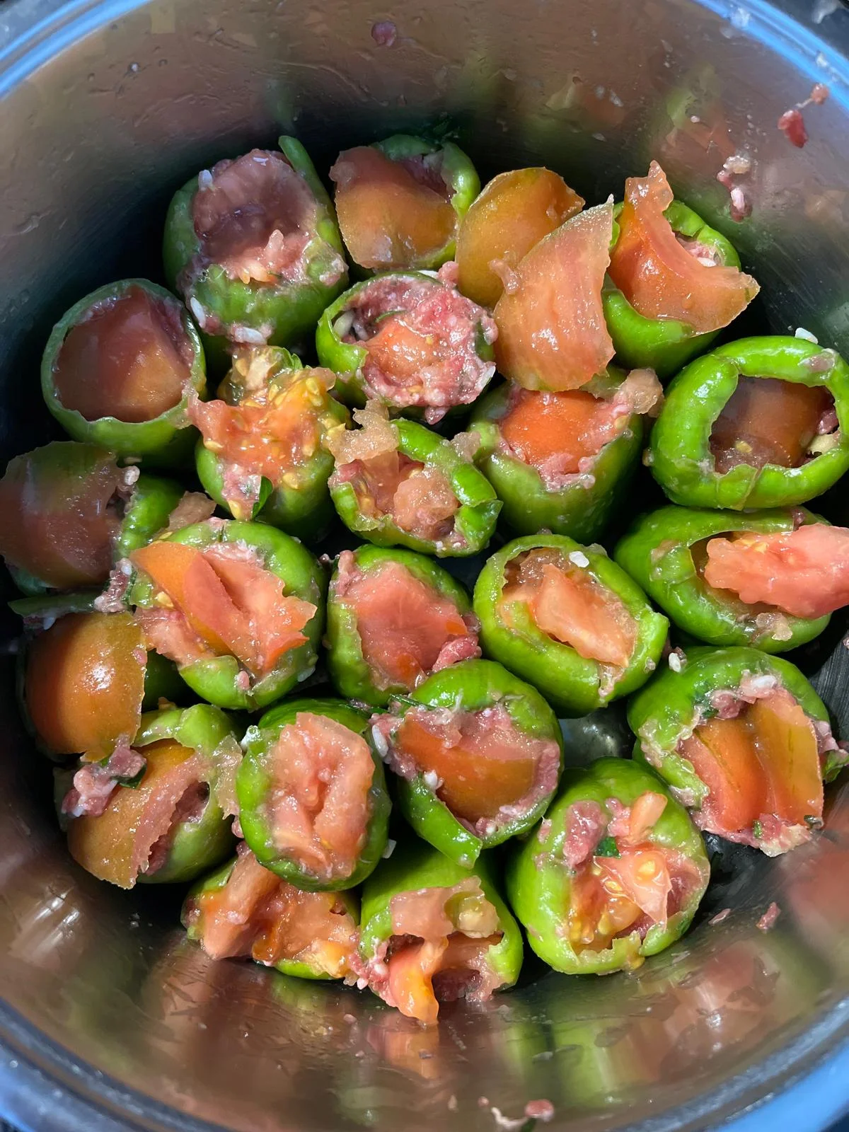 3- Karnabahar, domates, kimyon, karabiber, kekik, nane, pirinç, domates salçası, sarımsak, sıcak su ve tuz eklenir.