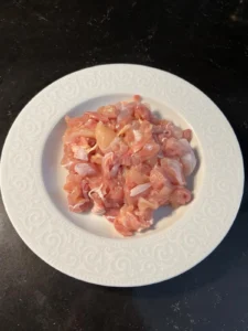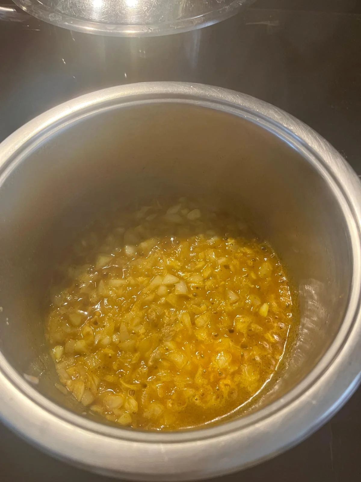 1- Tereyağı, zeytinyağı ve tavuk etini tencereye koyup tavuk rengini değiştirene kadar 4 dk kadar pişirin. Tencereden tavuğu alıp kalan yağın üzerine soğan, sarımsak, köri ve zerdeçal ekleyerek karıştırın ve ocakta pişirin.