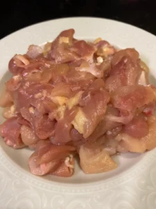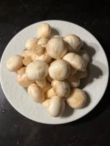 2- Tencereye soğan, mantar, zeytinyağı eklenir ve ocakta kavrulur. Mantar suyunu bıraktıktan sonra tavuk eti, sarımsak, domates, köri, tuz, sivribiber eklenir. 25 dakika kadar piştikten sonra maydanoz ile süsleyerek servis edilir.
